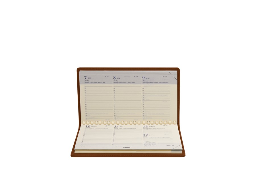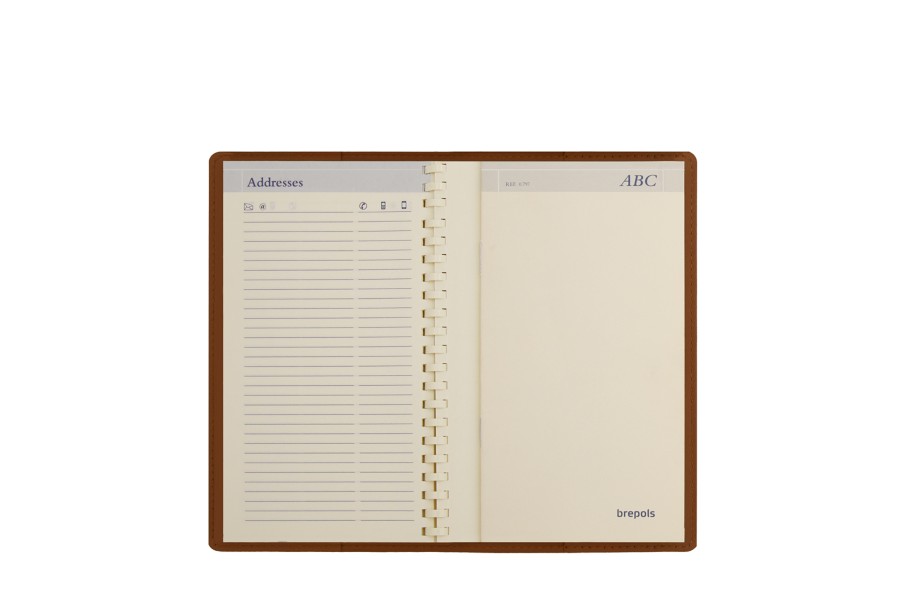 2019 全粒面皮革日记本/整理簿。Omniplan Brepols 螺旋装订,每周两页计划日记,覆盖全年,还有电话簿、计划表及世界地图。日记本时间从 1 月 1 日至 12 月 31 日