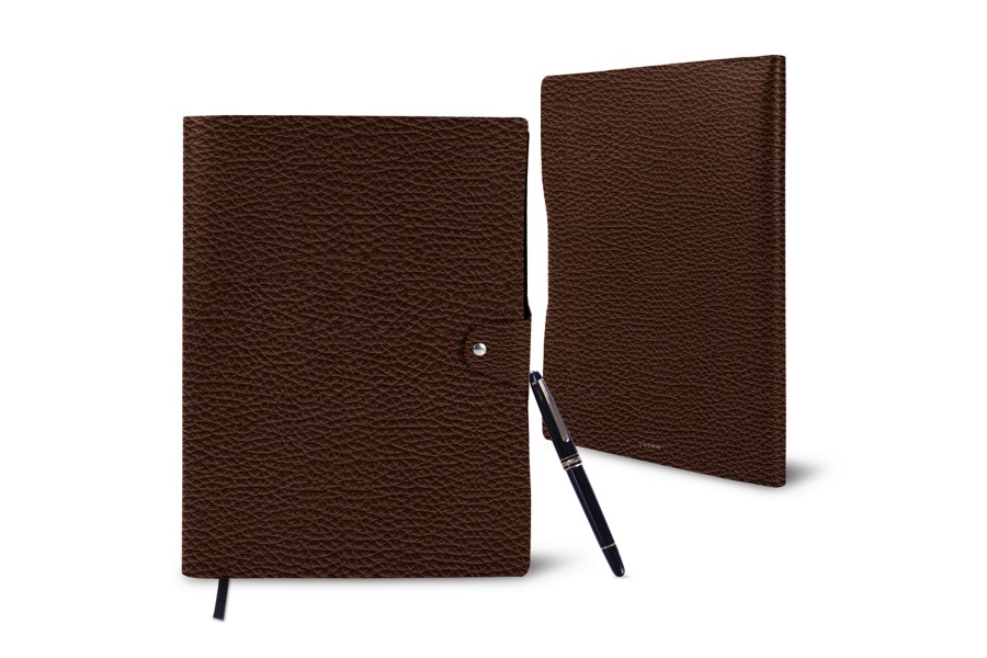 A4 Rechargeable Notebook - Dark Brown - Granulated Leather