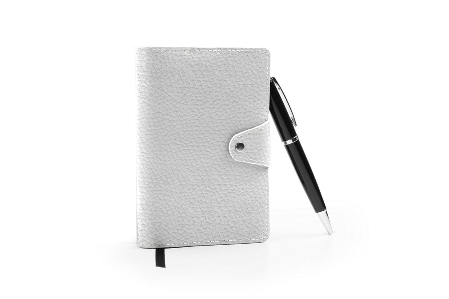 Here is the ideal leather pocket notebook, made in authentic leather. Whatever be the purpose, this A6 format notebook is handy and really practical. You can easily jot down phone numbers, confidential info, recipes and basically whatever you want. The A6 leather notebook has a sumptuous leather cover that closes thanks to a snap button flap. Subtle yet elegant, this pocket leather diary is available in a wide range of leathers and colours and can be refilled. Delivered with a A6 notebook of 100 ivory-coloured lined sheets, the leather notebook cover is perfectly customisable.
