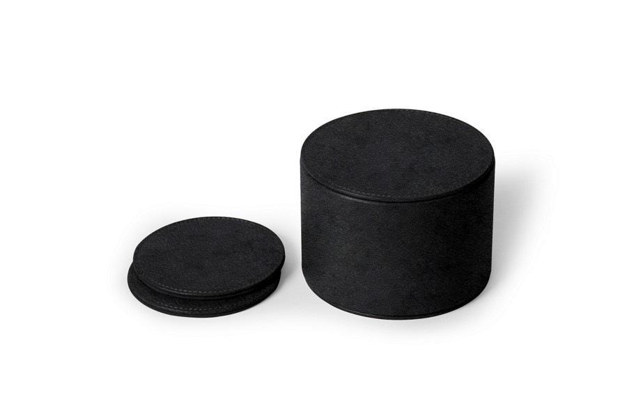 杯垫十二件套 - 黑色 - 带状皮革