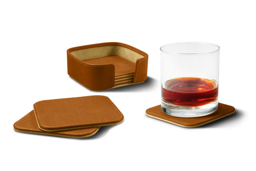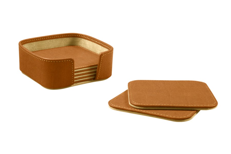 方形杯垫六件套 - 自然色 - 接合皮革