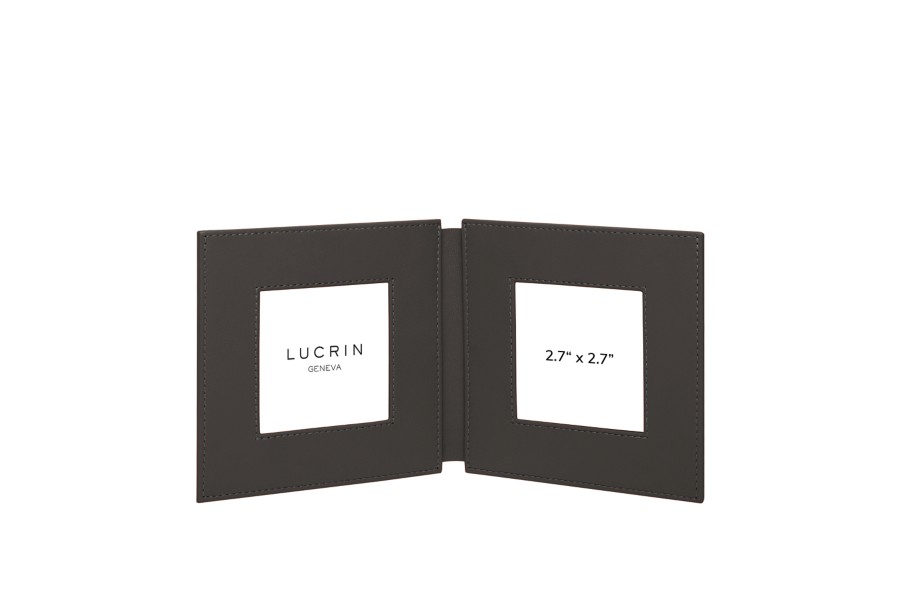 Double Picture Small Frame - Mouse-Grey - Crocodile style calfskin