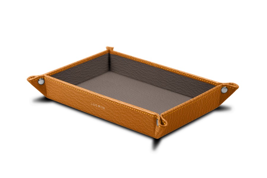 这款皮革矩形收纳托盘是杂物托盘系列中的畅销品。这款矩形收纳托盘,采用简约设计,可收纳智能手机、硬币、纸币、钢笔、车钥匙等。您可以把口袋中的物件悉数放在这款优雅的皮革收纳托盘中,令房门附近的案几或办公桌整洁一新。离开房间或屋子之前,您可确保携带了所有必备品。这款皮革收银盘有多种颜色和皮革类型可选。