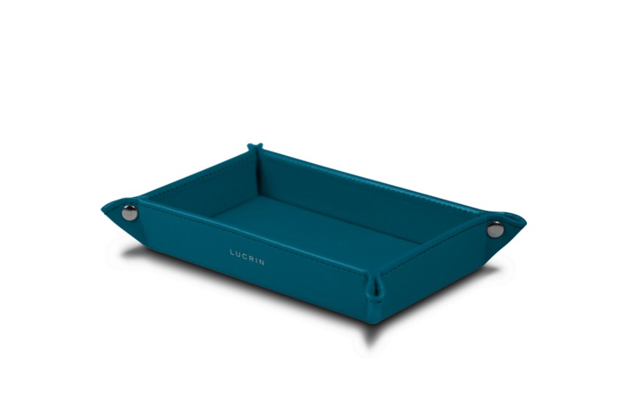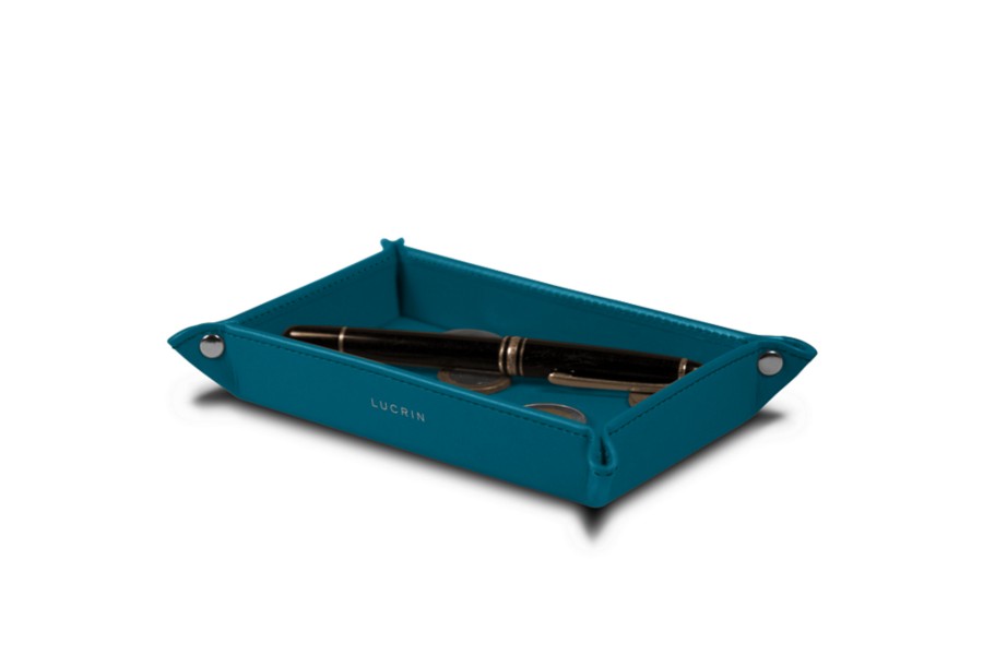 小号矩形收纳托盘 (14 x 8 x 2.5 cm) - 绿松石色 - 光滑皮革